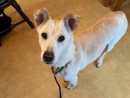 モロちゃんです。保護犬でもう10歳は超えているけど、とてもそんなふうには見えません。穏やかでカワイイ女の子です。雪に慣れていないので最初はびっくりしたようですがだんだん適応したみたいです。こんないい子を見るとまた犬と暮らしたくなってしまいます。