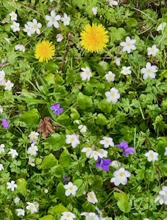 この地の5月は一年中で最も美しい。こんな罰当たりな私でも、このような世界を与えてくださった造物主に感謝したくなる。この柔らかな緑の中を歩いていると、草木と私が一体化するような気がしてくる。当然つまらない自我は消え去り所有の欲望も無くなっていく。これはあながちトシのせいでもあるまい。季節が新しくした明るい樹々や鳥の声、そして足元の可憐な草花。 わたしは自分が単純な この世の形象のひとつであることを喜ぶ。